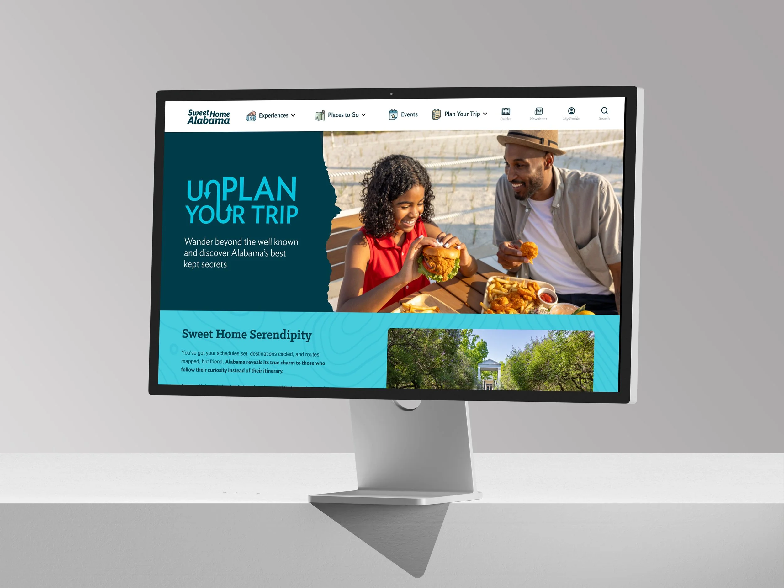Landing page design for Alabama Tourism’s Unplan Your Trip campaign. The campaign aims to encourage people to make stops at destinations that they probably didn’t plan for, but are worthwhile to experience while visitors to Alabama on on their way to their planned destinations.